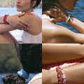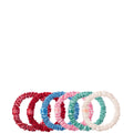 This set includes: 1 x sundown, 1 x bianca, 1 x ocean, 1 x frutti, 1 x turquoise, 1 x sunshade pure silk skinny scrunchies.