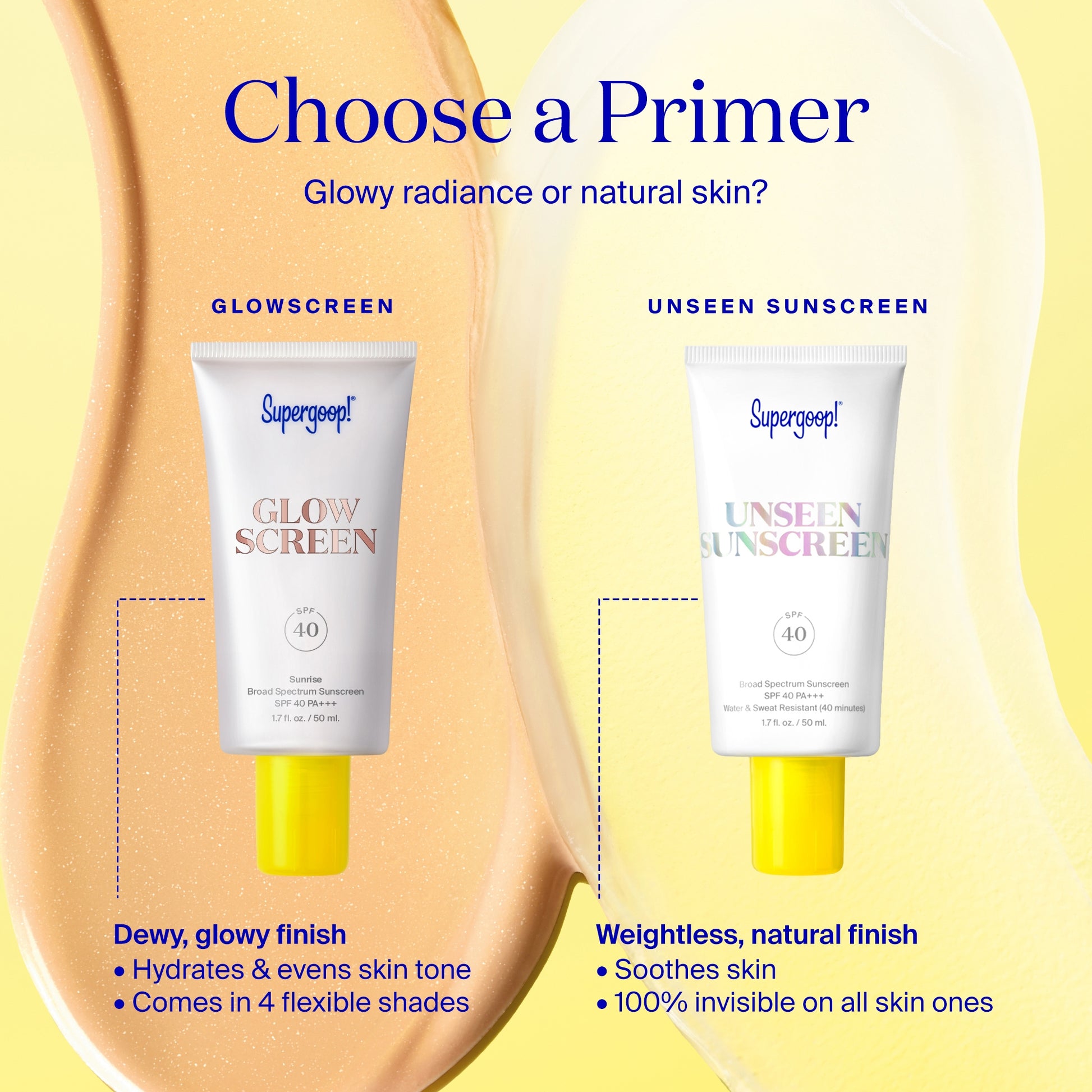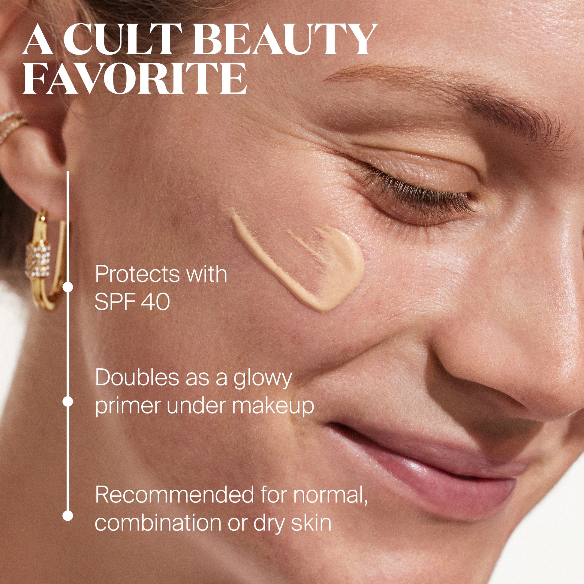 GLOWSCREEN™ SPF 40 is a lightweight, pearlescent formula that hydrates the skin, while acting as a luminous, makeup-gripping primer. SPF hack: It also doubles as a highlighter wherever you want an extra little dose of (sun)shine.