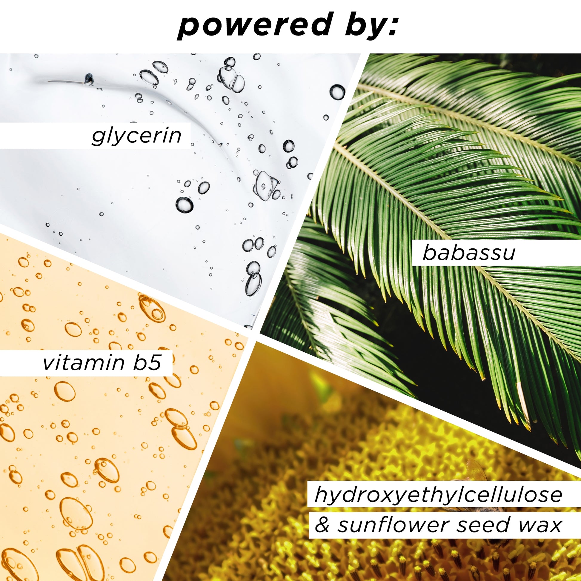 - Hydroxyethylcellulose and Sunflower Seed Wax: plant-derived ingredients that naturally thicken
