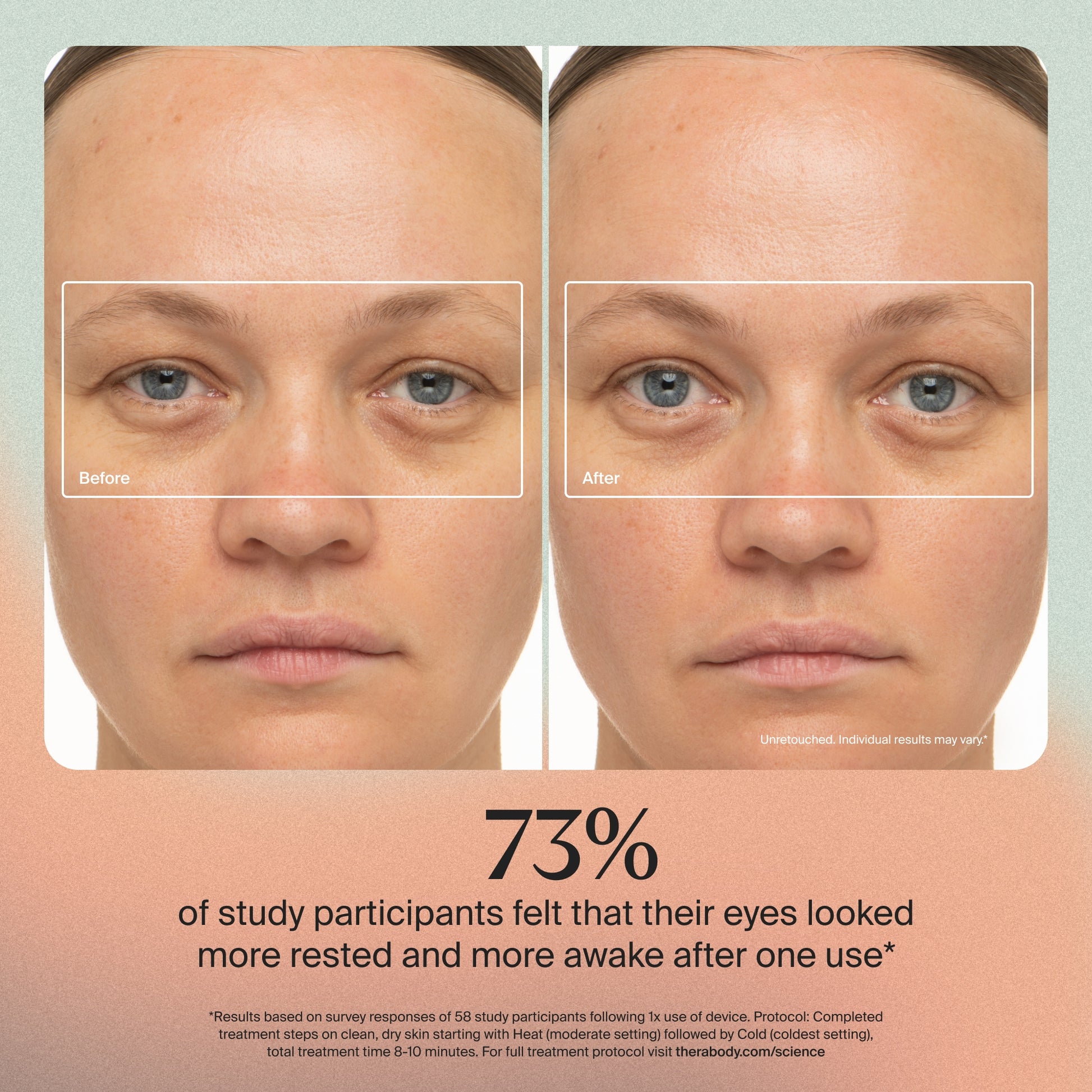 Peace out, puffiness. Say hello to your new skincare hero, the firstofitskind TheraFace Depuffing Wand that features cold and heat facial treatments in one portable device for use at home and onthego. Clinical studies showed decreased puffiness and dark circles under the eyes, and enhanced radiance. It delivers sciencebacked temperatures that are safe for delicate skin, ensuring consistent and reliable results across your entire face. Choose from 3 preset temperature levels suitable for all skin types. The wand reaches every corner and crevice of your face with its contoured applicator tip, giving you allover, feelgood results you can see in just minutes.