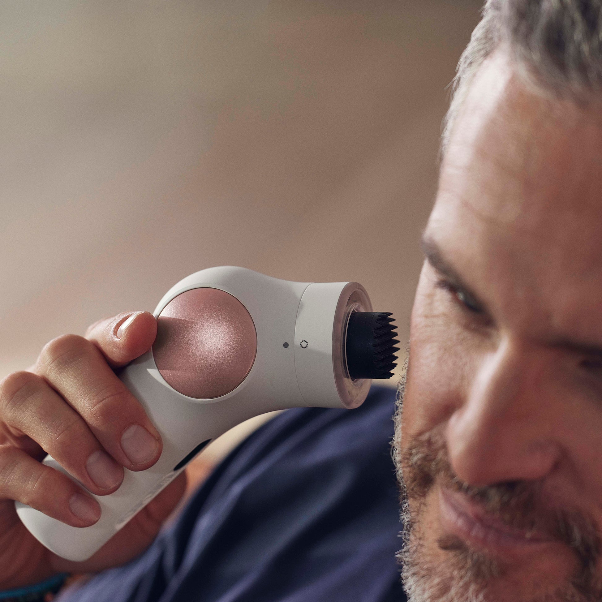 The TheraFace PRO is your all-in-one solution for optimal facial health. TheraFace PRO goes where no facial device has gone before, bringing Therabody's renowned technology behind percussive therapy to the face to reduce tension, relax facial muscles, and care for it at the deepest level.