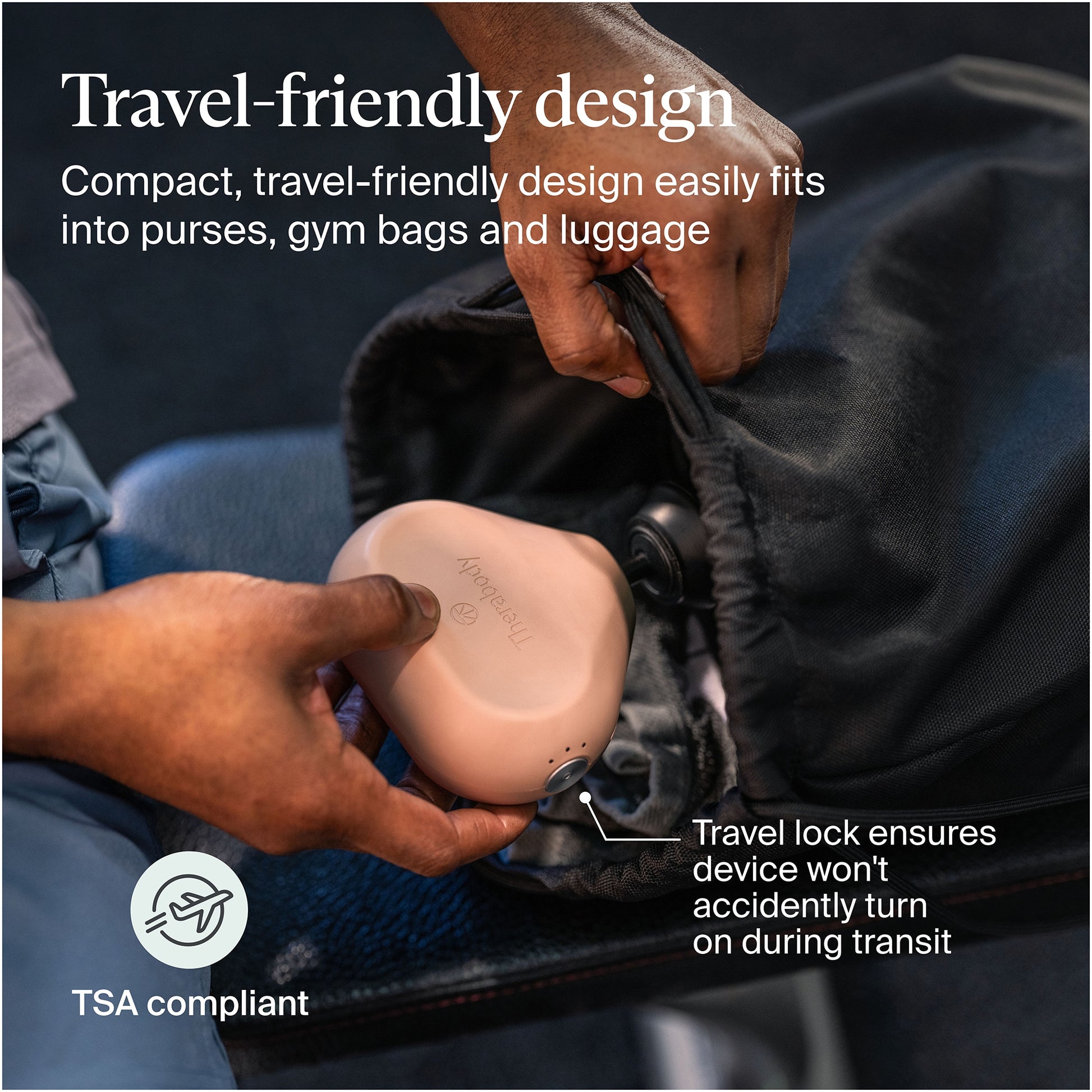 Perfect for long flights, daily commutes, lunch breaks, or a round of golf-the Theragun Mini massager tucks into your travel bag for quick, easy relief wherever life takes you.
