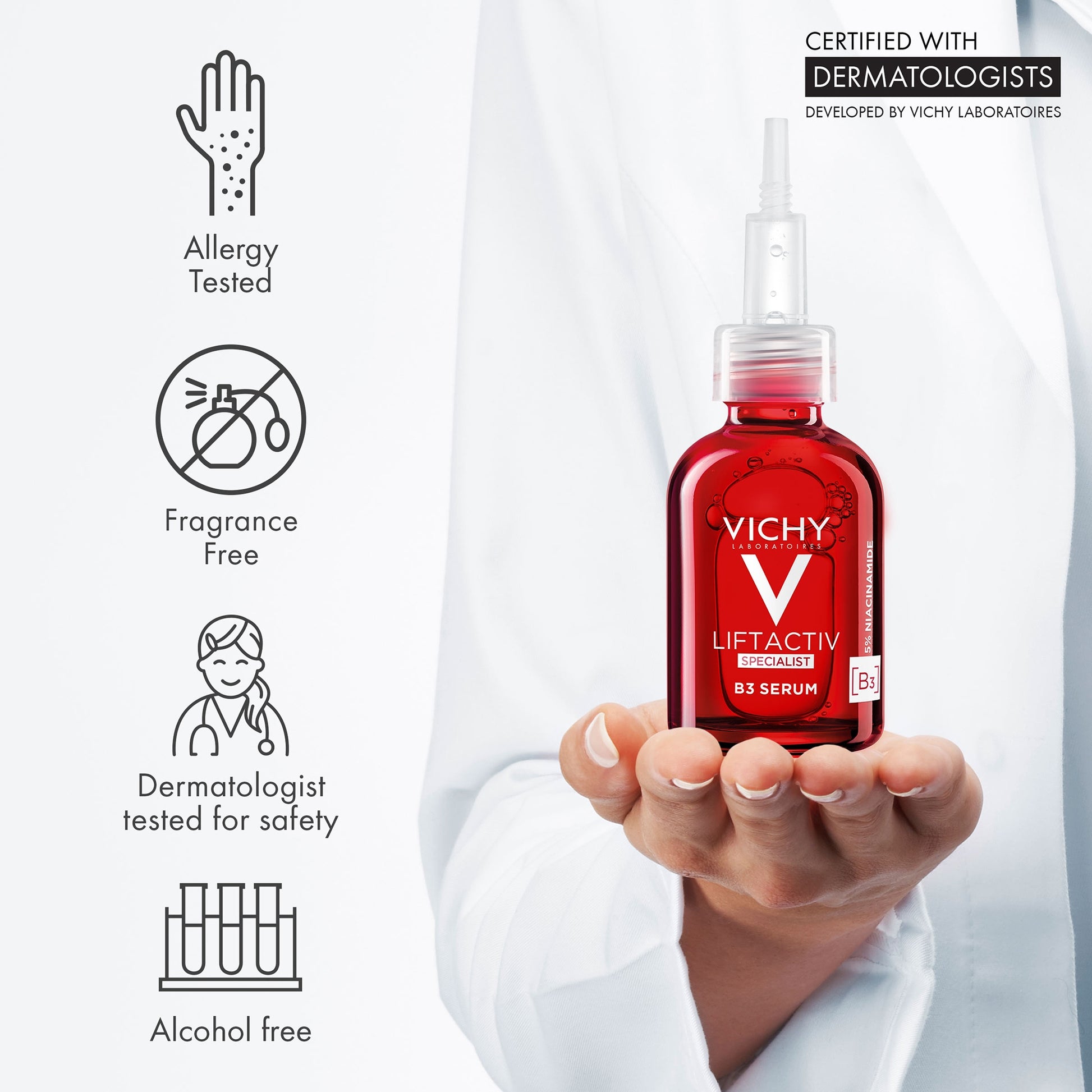 - This daily use anti-aging serum is suitable for all skin tones and is fragrance-free, alcohol-free and allergy tested.